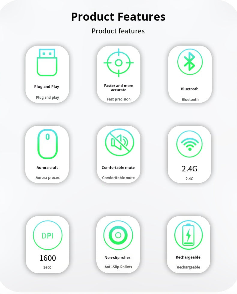 Engineered for extended work sessions, this vertical wireless mouse combines ergonomic design with advanced charging technology. The luminous dual-mode functionality seamlessly switches between Bluetooth and 2.4GHz wireless connectivity, adapting to your workflow. Silent photoelectric sensors eliminate distracting clicks while maintaining precision tracking. Rapid spot charging keeps you productive without lengthy downtime. Ideal for professionals seeking comfort, reliability, and versatile connectivity in a single device.